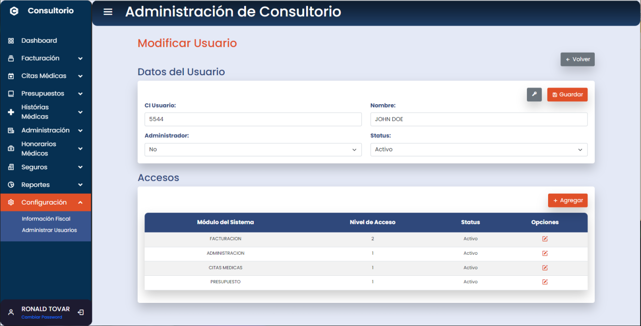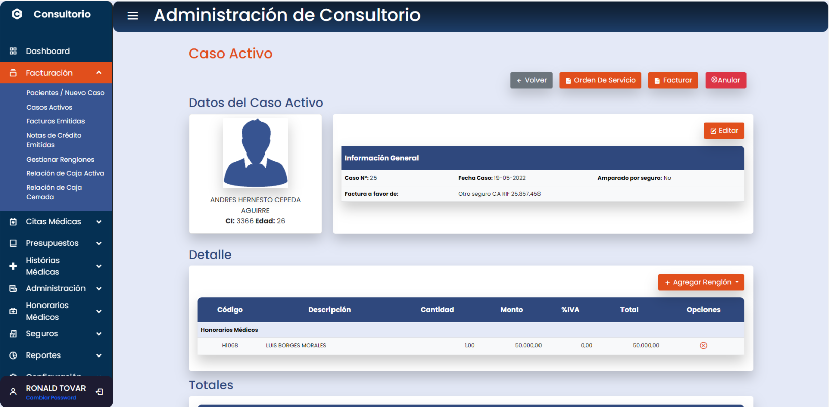 Lleva el control de los honorarios por consultas o procedimientos médicos.