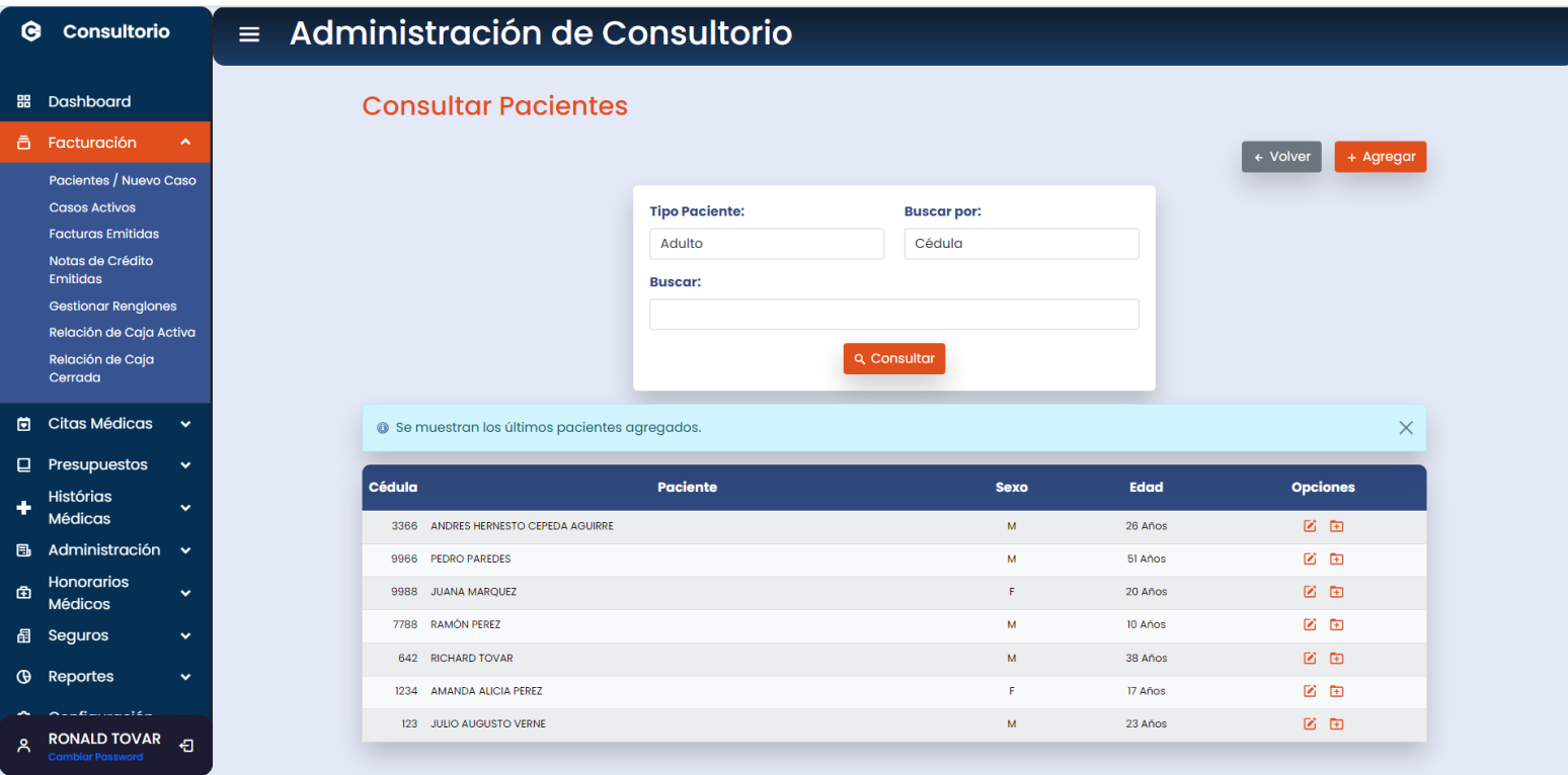 Gestión de información de pacientes adultos e infantes.