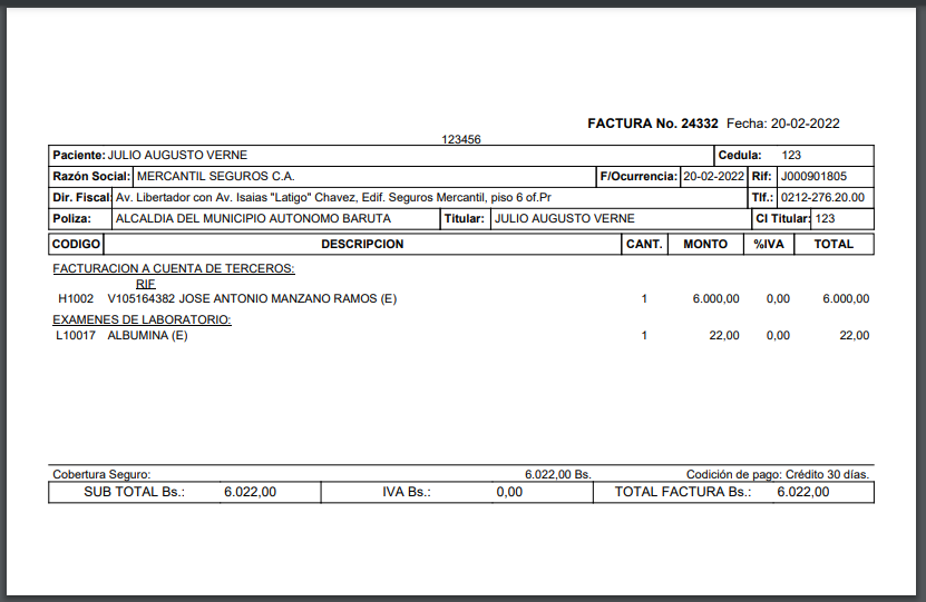 Emisión de Facturas a particulares y empresas de seguros.